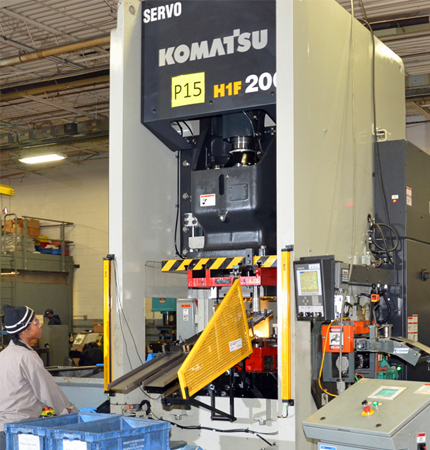 For example, Our Komatsu H1F220 Hybrid AC Servo Stamping Presses offer you a major increase in forming performance and productivity due to its free motion mechanism. These are extremely advanced presses enabling optimal motion matched to work requirements. The accurate linear sensor maintains high bottom dead center accuracy over a long period of time giving outstanding performance in blanking and precision forming of steel, copper, titanium, sheet metal, aluminum, brass, and a variety of steel types.